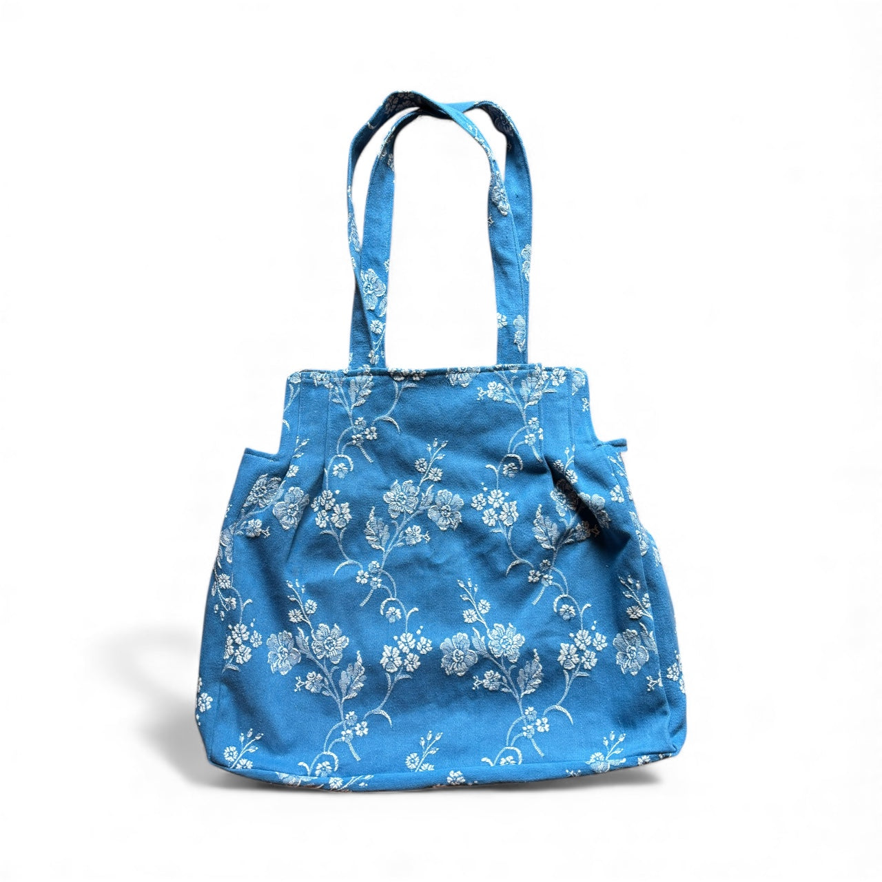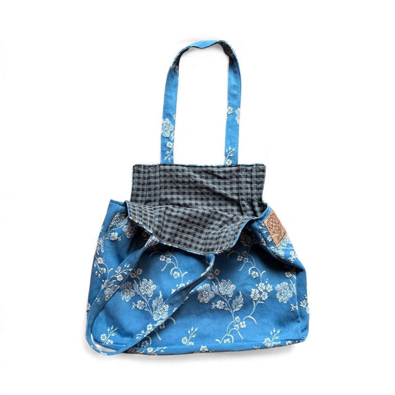 Es un diseño muy especial sacado de un modelo del siglo pasado y adaptado a nuestros tiempos :) hecho de tela de colchón antigua reciclada, forrada con tela de algodón y con un bolsillo interior. 2 tiras para llevar colgada.