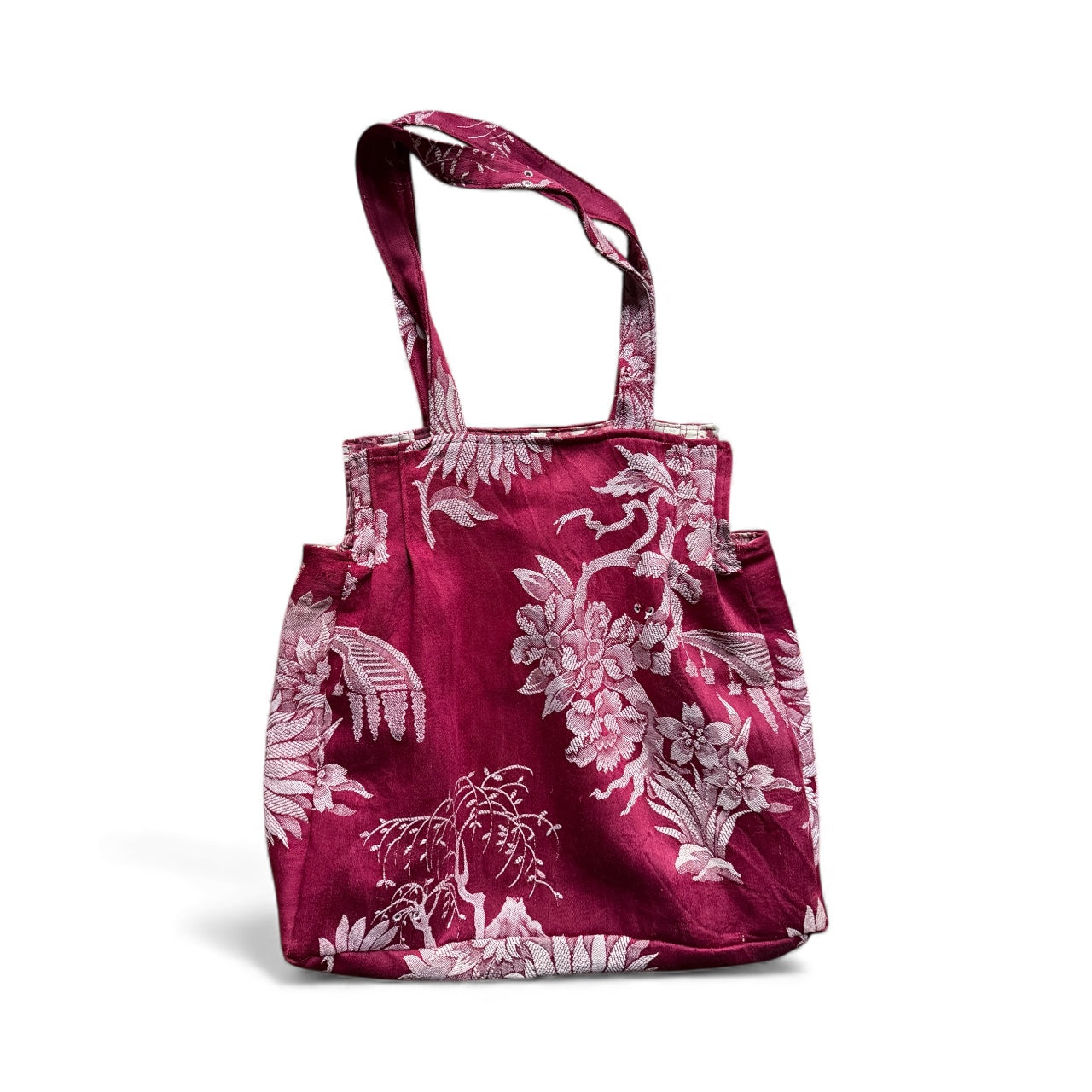 Es un diseño muy especial sacado de un modelo del siglo pasado y adaptado a nuestros tiempos :) hecho de tela de colchón antigua reciclada, forrada con tela de algodón y con un bolsillo interior. 2 tiras para llevar colgada.